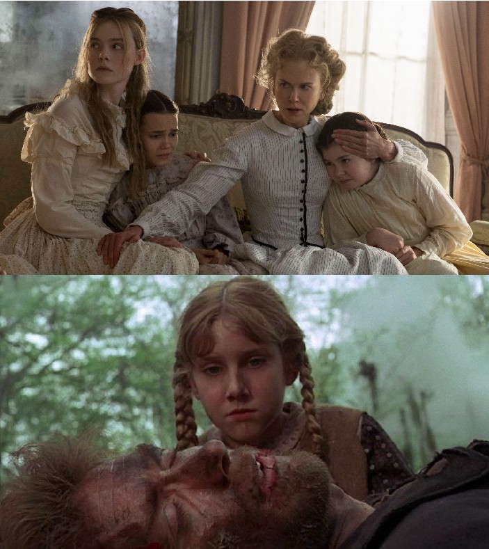 In her remake of that film, writer/director Sophia Coppola delivers virtually the same story. In the war-torn Confederate South, a young student from an all-girl’s school wanders outside the grounds to pick mushrooms. There she stumbles upon that Union soldier, Corporal John McBurney, now portrayed by Colin Farrell. His leg has suffered a serious injury, so she helps him into the school grounds, delivering him to the school’s matron, Miss Martha (Nicole Kidman). Out of “Christian compassion,” the decision is made to bring the enemy soldier into the house and nurse him to health before turning him in to the Confederate army, lest he die on the route to prison. Once inside the house, he finds himself surrounded by females of varying ages, all of whom seem to have a special interest in him. The children fawn after him in delight, while the adults and older girls throw themselves at the Corporal like the maidens from Monty Python’s Castle Anthrax (sans offers for oral sex). McBurney happily encourages the attention of each. But when the horny soldier chooses one of the women over the others, it sparks a tragedy that sends the story on a dark trajectory.